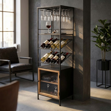 - Dati Tecnici Mobile in ferro e legno con 1 anta, porta bottiglie e porta bicchieri Dimensioni: cm 51,50 x 41 x 165,50 h