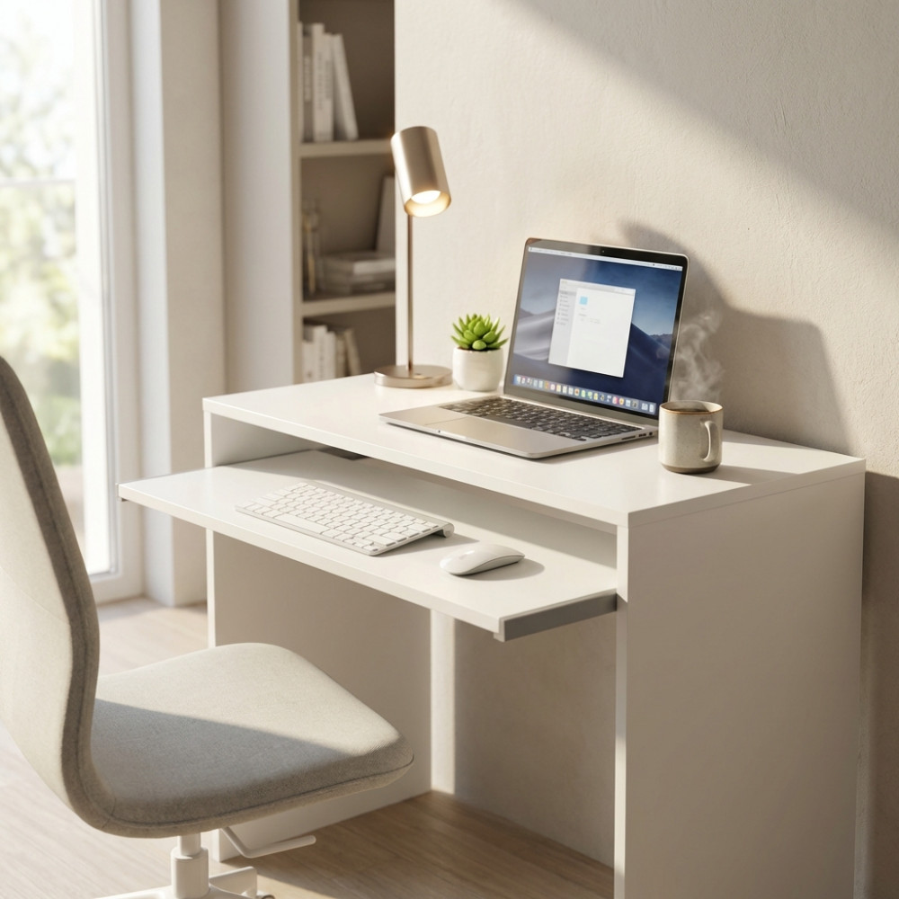 - Dati Tecnici Porta PC in legno BIANCO Dimensioni: cm 90 x 45 x 74 h