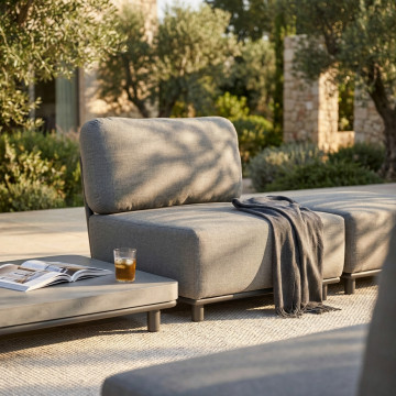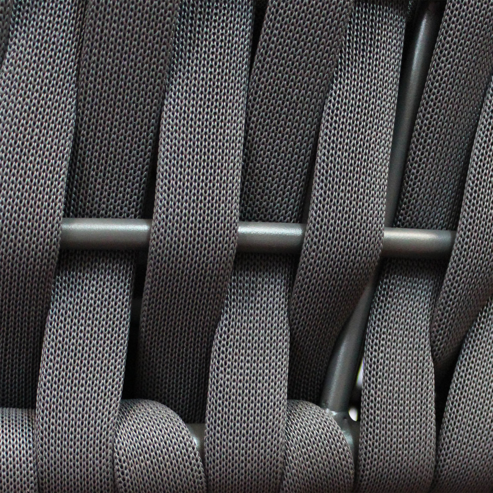 Struttura in alluminio ANTRACITE braccioli e schienali rivestimento in corda in PVC con imbottitura in gomma cuscini di spessore 15 cm, trattamento TPU idrorepellente Dimensioni: cm 71 x 85 x 83 h