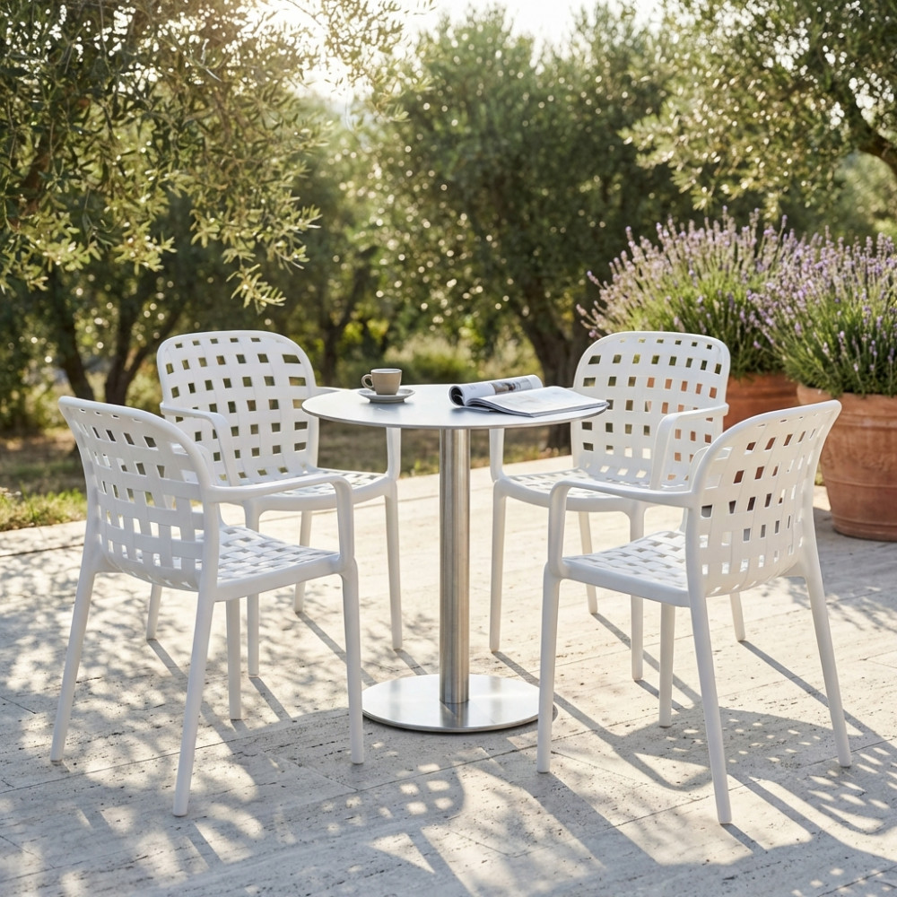 - Dati Tecnici Poltrona in polipropilene impilabile ANTRACITE, BIANCA, GRIGIO CHIARO, ROSSA, TAUPE o VERDE Dimensioni: cm 58 x 57,5 x 82,5 h