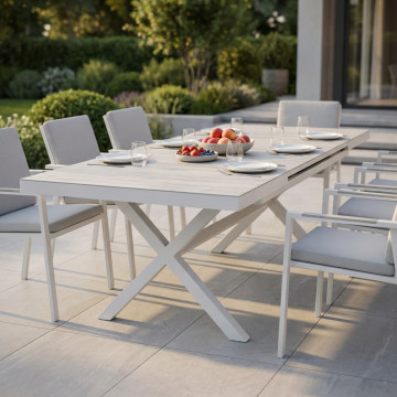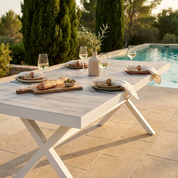 Struttura in allumino ANTRACITE o BIANCA piano del tavolo in ceramica effetto legno Dimensioni: cm 200/260 x 100 x 75 h