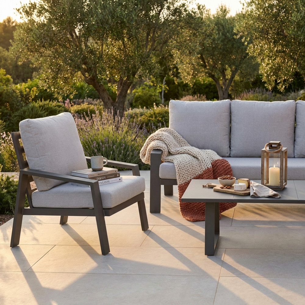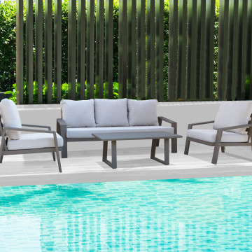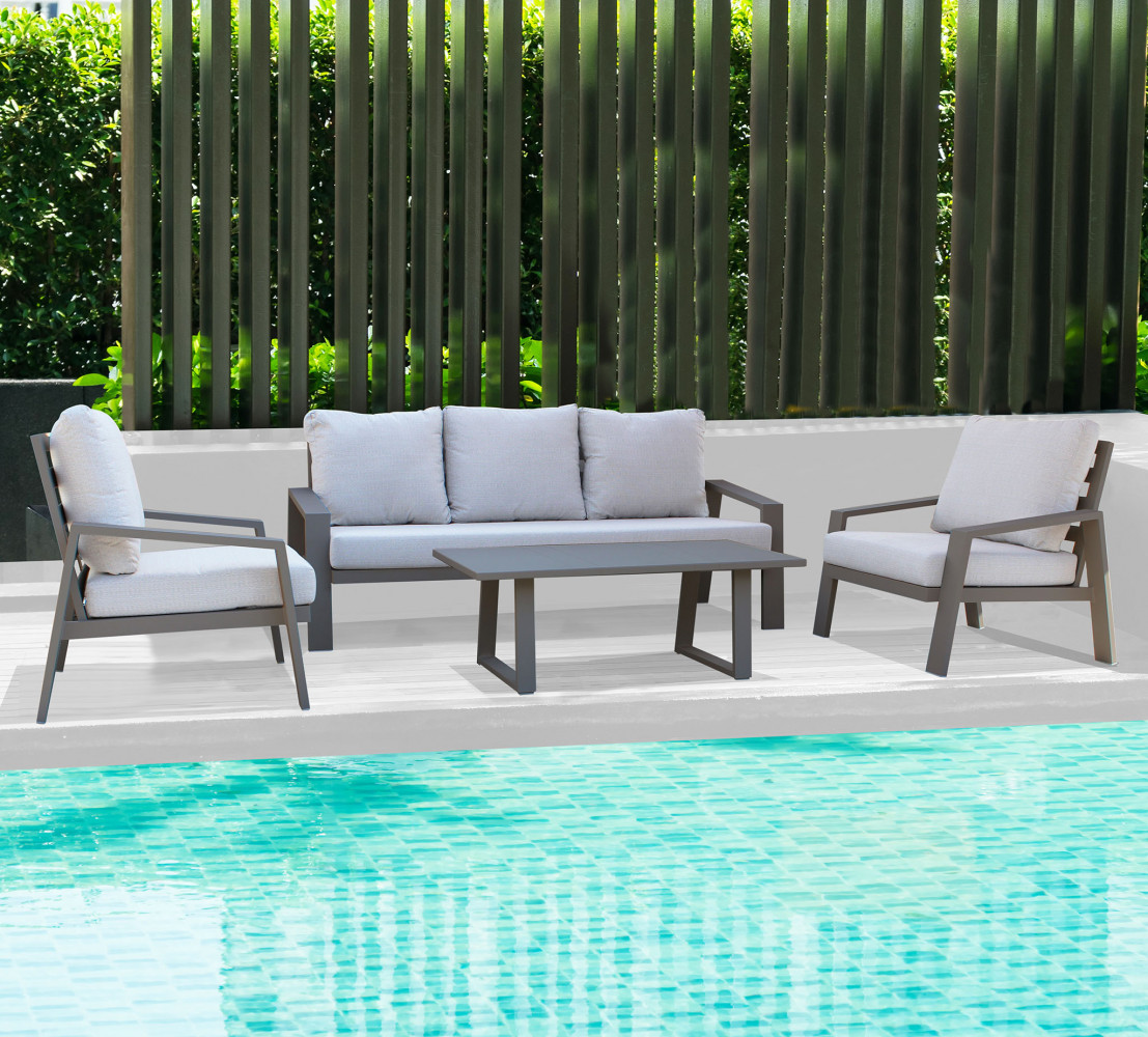 Struttura in allumino TORTORA, ANTRACITE, BIANCO o TAUPE con cuscini in poliestere di spessore 12 cm, KD Dimensioni: D.190x80x80/P.88x80x80/T.110x60x40