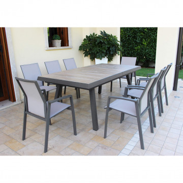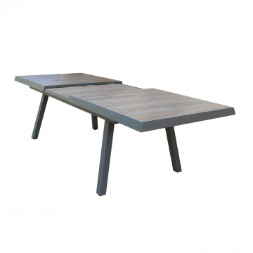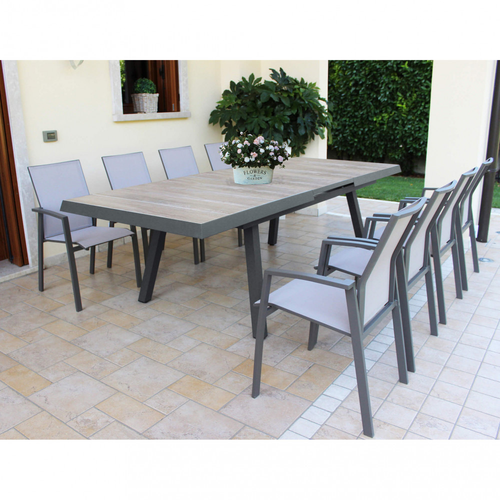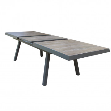 Struttura in allumino ANTRACITE, TAUPE o BIANCA piano del tavolo in ceramica effetto legno GRIGIO nel taupe NATURALE Dimensioni: cm 205/265 x 105 x 75 h