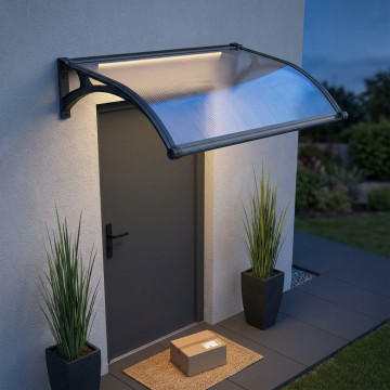 Pensilina con LED, PANNELLO SOLARE e braccetti in ABS Policarbonato 5,2 mm, si ricarica da solo non ha bisogno di manutenzione Dimensioni: cm 100 x 120 / P.95 x 115