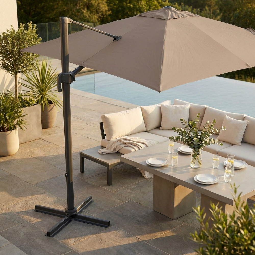 OMBRELLONE NETTUNO LUX NERO P/L 3 X 3 TELO TAUPE