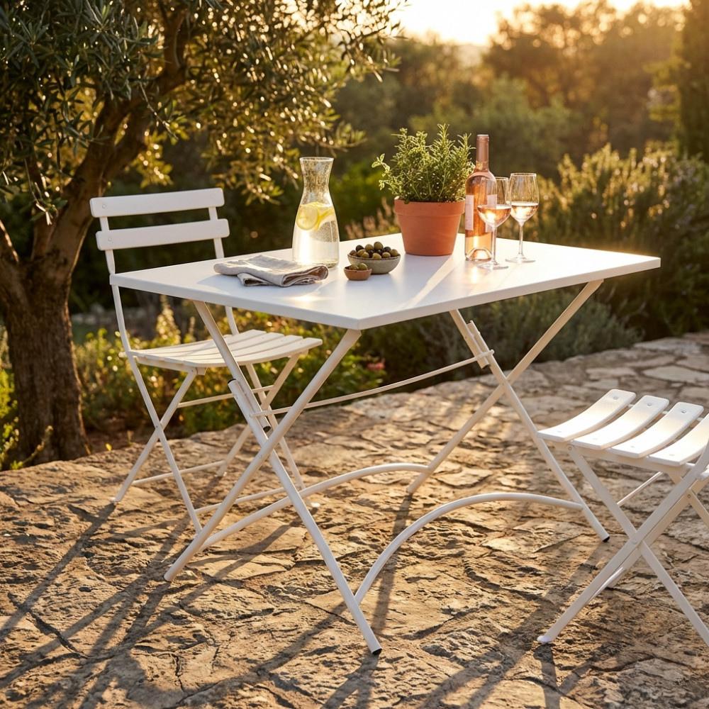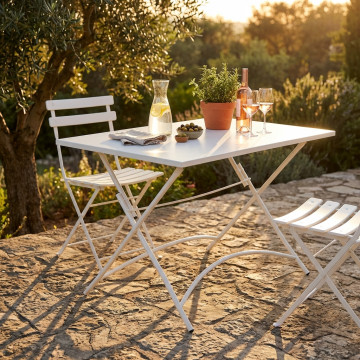 Metallo TORTORA, BIANCO, GRIGIO, TAUPE, ROSSO o VERDE piano pieghevole, tubi Ø 19 x 1,4 mm trattamento da esterno antiruggine in elettroforesi Dimensioni: cm 110 x 70 x 72 h