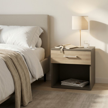 COMODINO NIGHTSTAND GRIGIO E OLMO