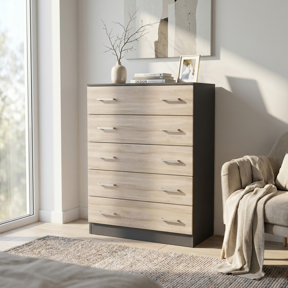 MOBILE 5 CASSETTI 5 GRIGIO E OLMO