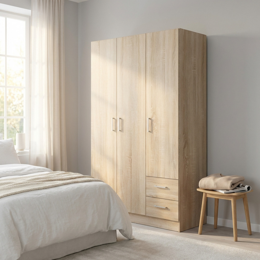 ARMADIO 3 ANTE E 2 CASSETTI QUERCIA CHIARO