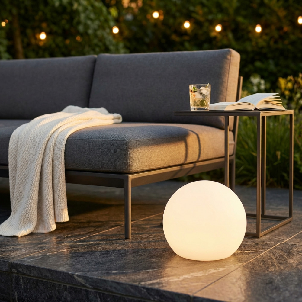 Sfera con impianto luce a risparmio energetico Lampada a risparmio energetico 20w (e27) - 220/240v - 50/60 hz Cavo nero 3 m - Lampadina fornita assemblata - Protezione IP44 Dimensioni: cm Ø 50