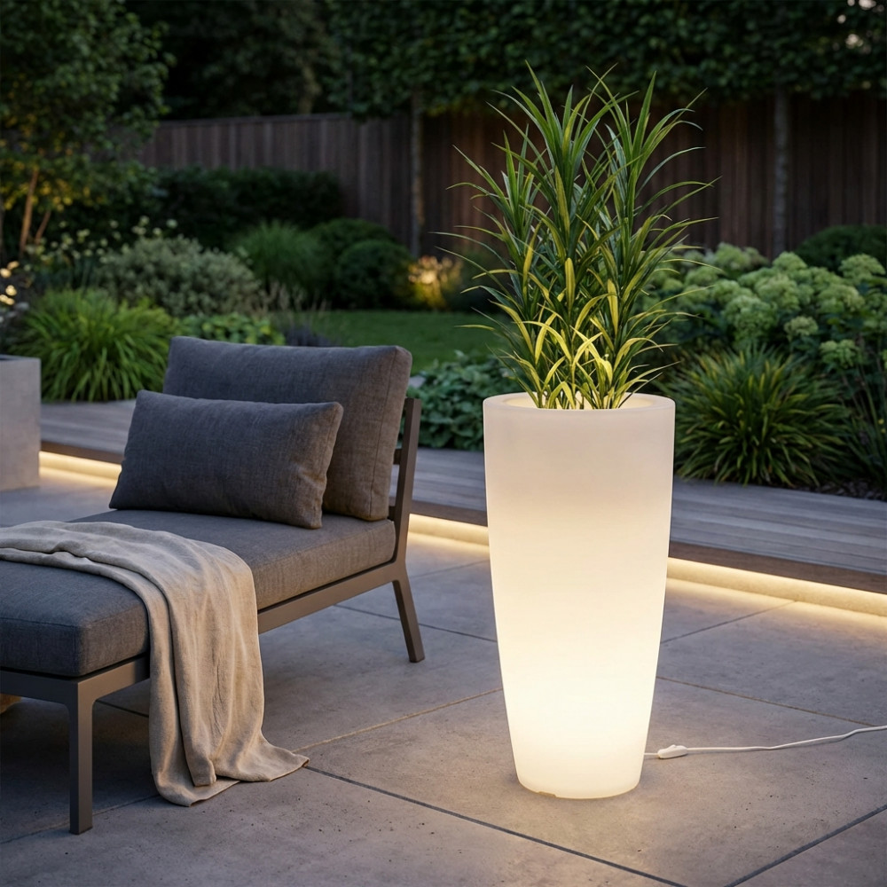 Vaso con impianto luce a risparmio energetico Lampada a risparmio energetico 20w (e27) - 220/240v - 50/60 hz Cavo nero 3 m - Lampadina fornita assemblata - Protezione IP44 Dimensioni: cm Ø 40 x 90 h