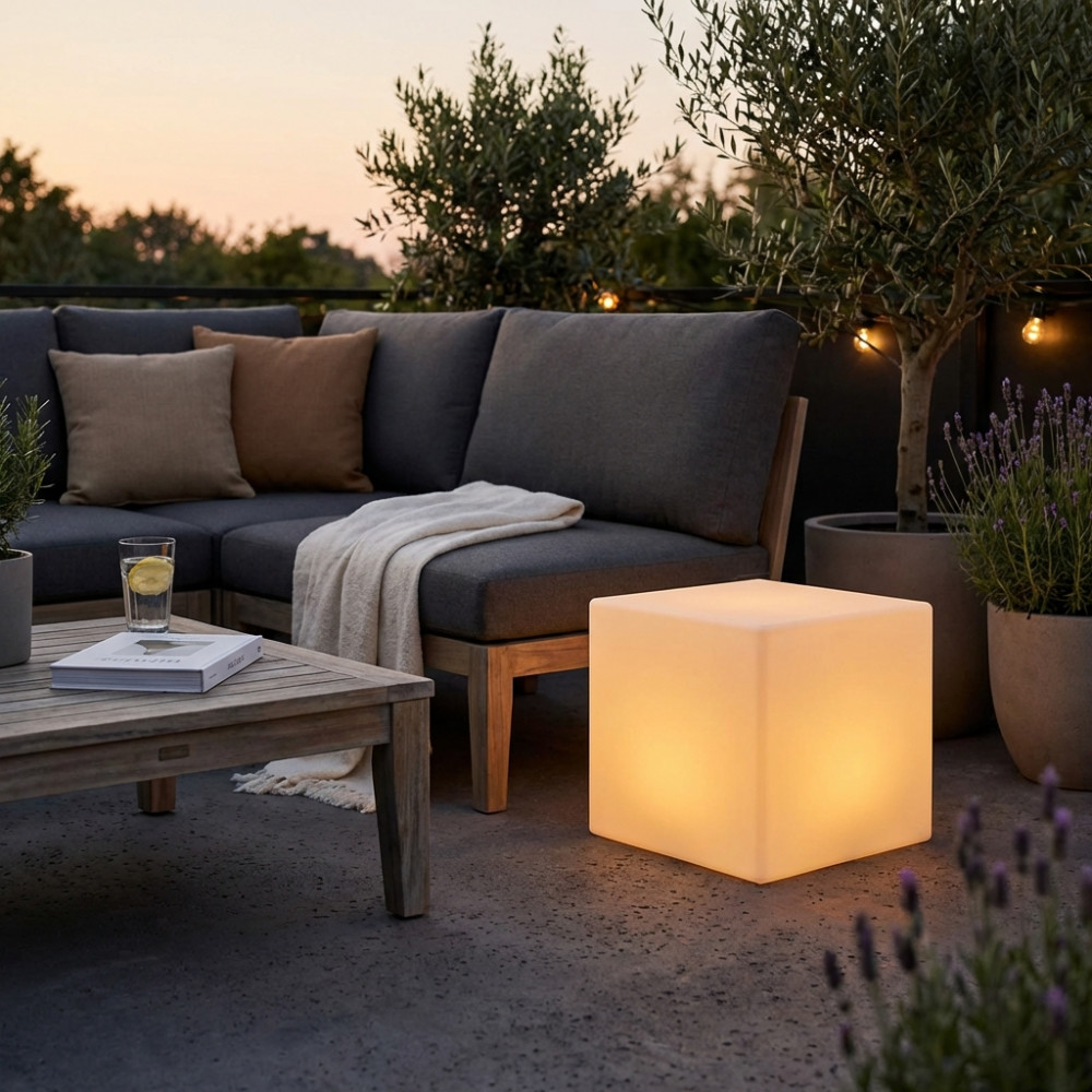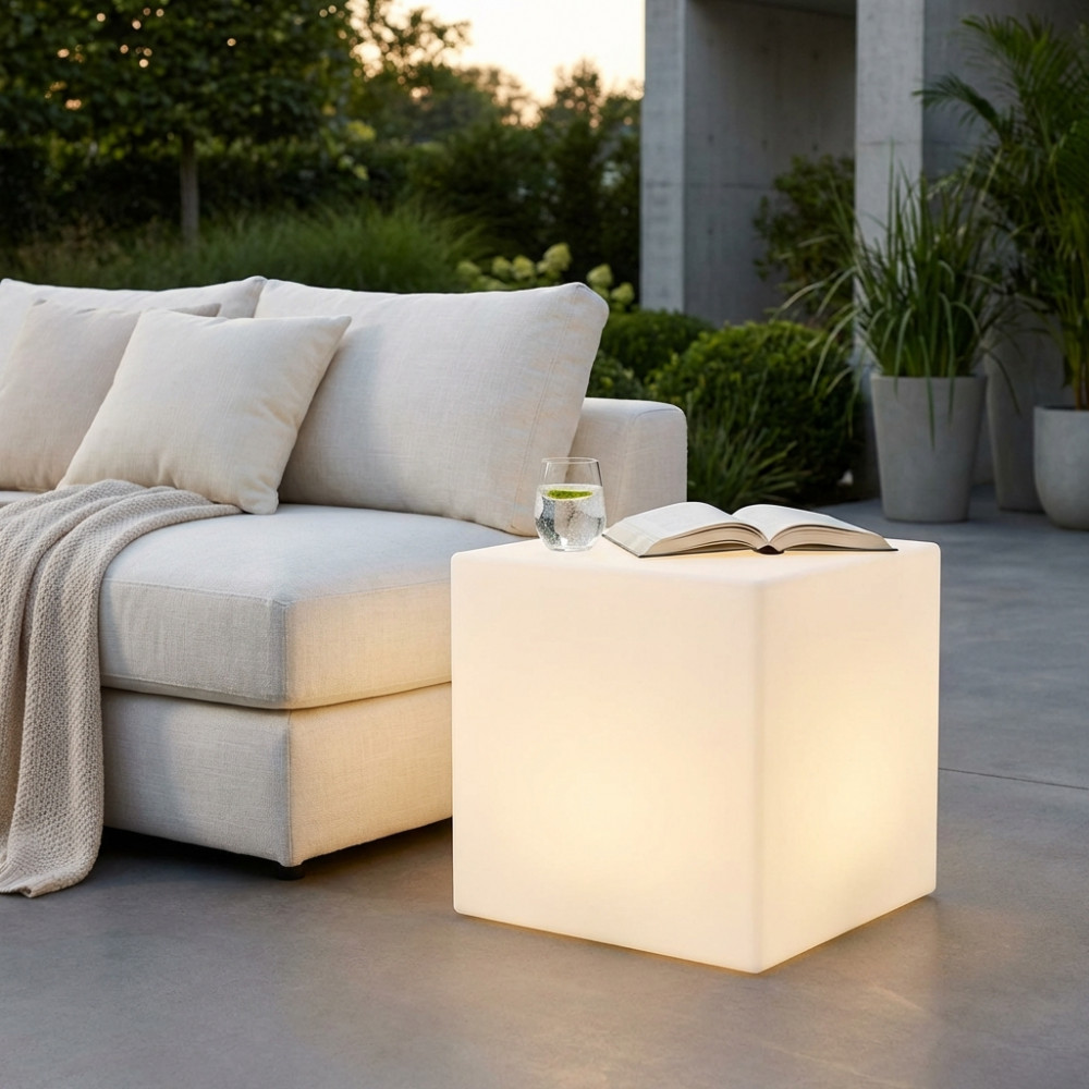 CUBO 40 X 40 X 40 LUMINOSO INDUS CON LED MULTICOLOR E BATTERIA SOLARE