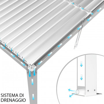 Struttura in alluminio bianco o grigio scuro copertura a lamelle frangisole orientabili a movimentazione manuale resistente a tutte le intemperie Dimensioni: m 3 x 3 x 2,5 h