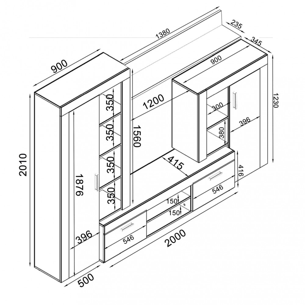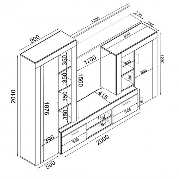 Dimensioni: cm 263 x 40 x 200 h