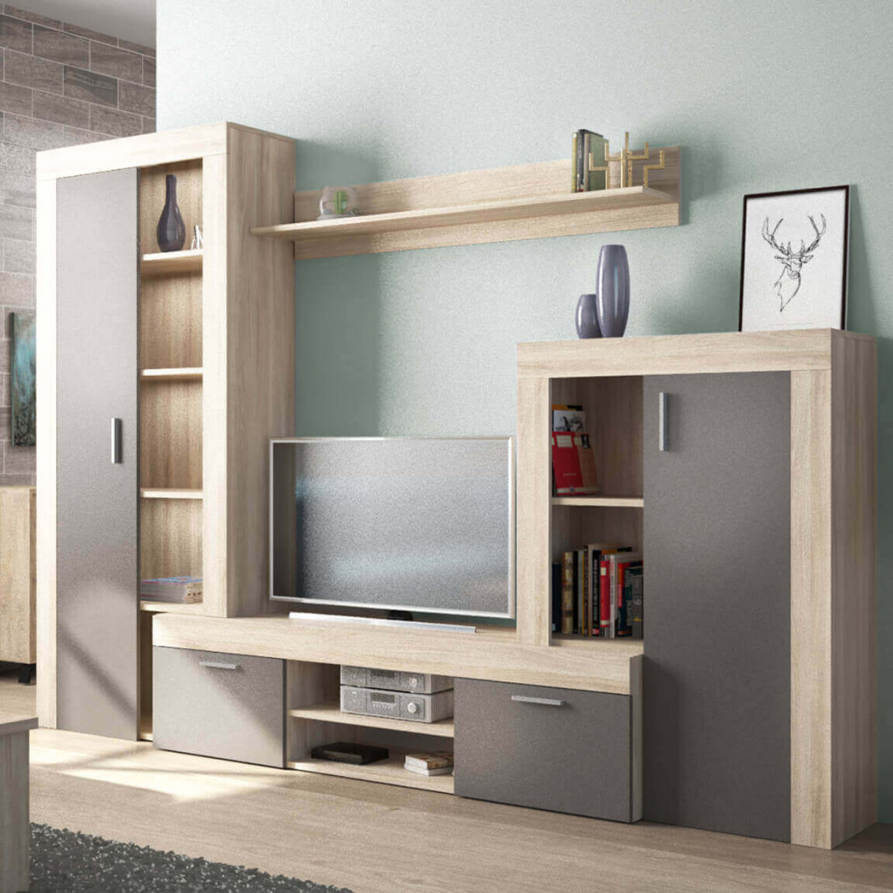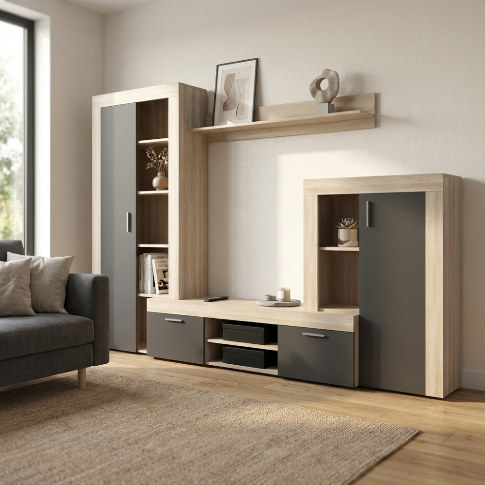 PARETE SOGGIORNO NOBEL ANTRACITE E QUERCIA CHIARO