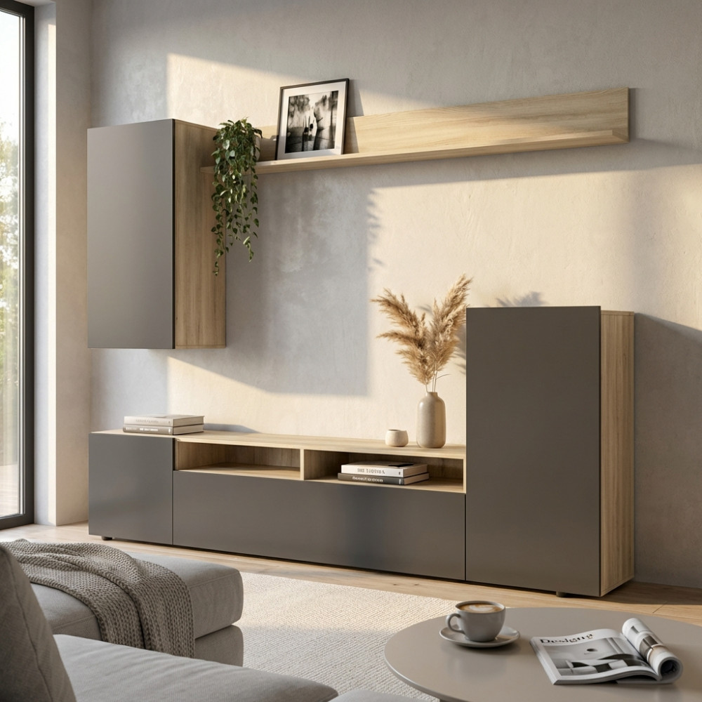 PARETE SOGGIORNO LEONARD ANTRACITE E OLMO