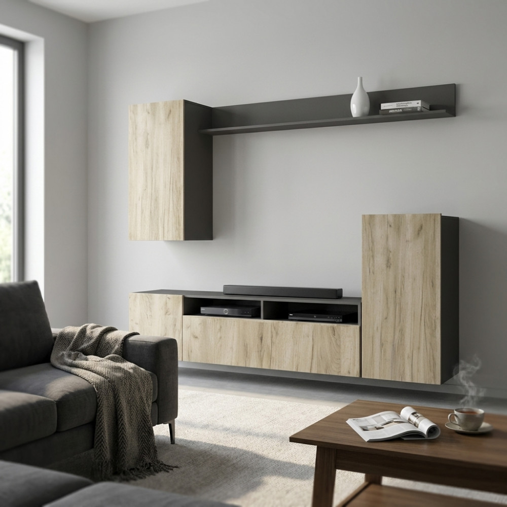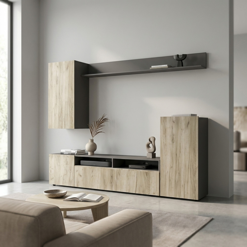 PARETE SOGGIORNO ENTRY ANTRACITE E OLMO