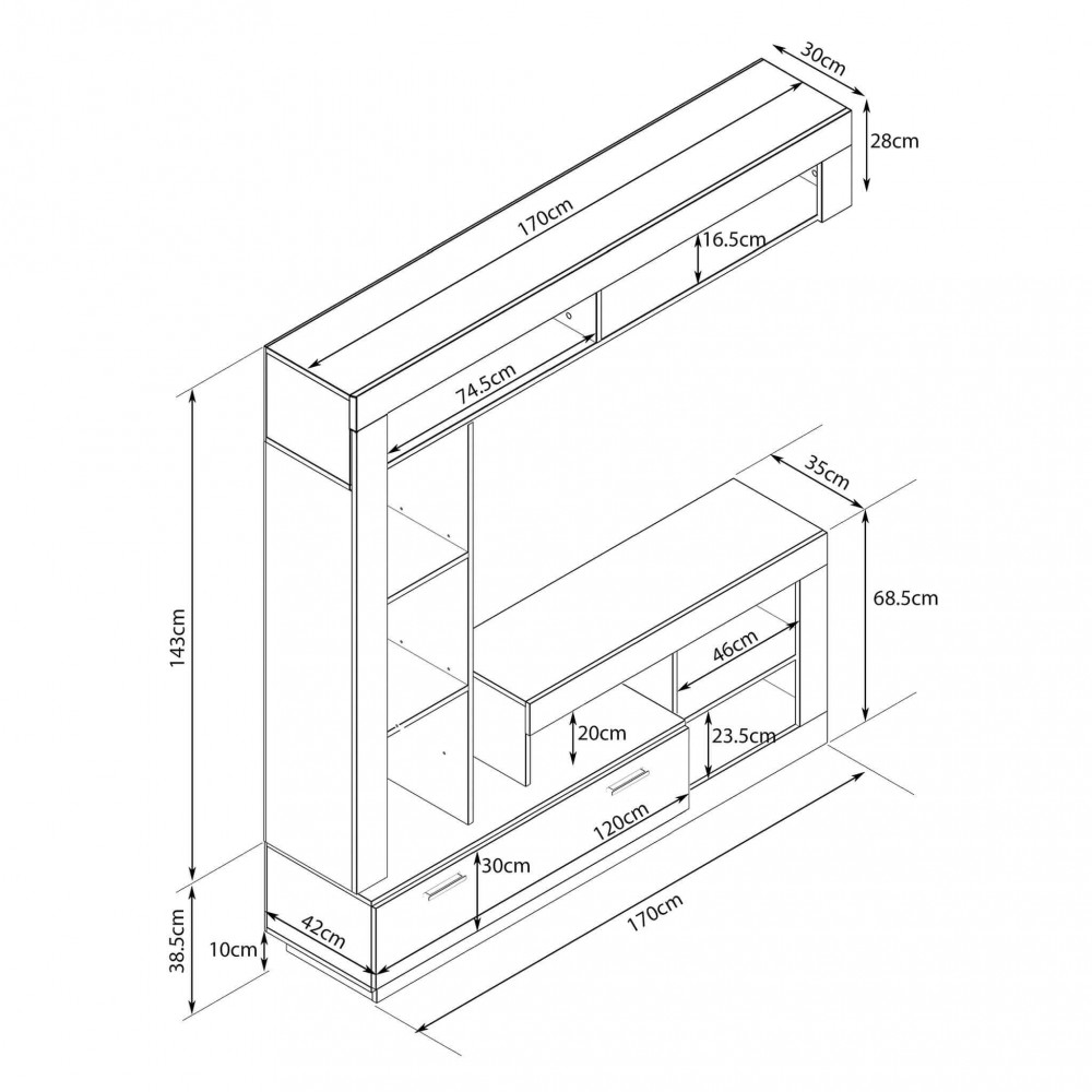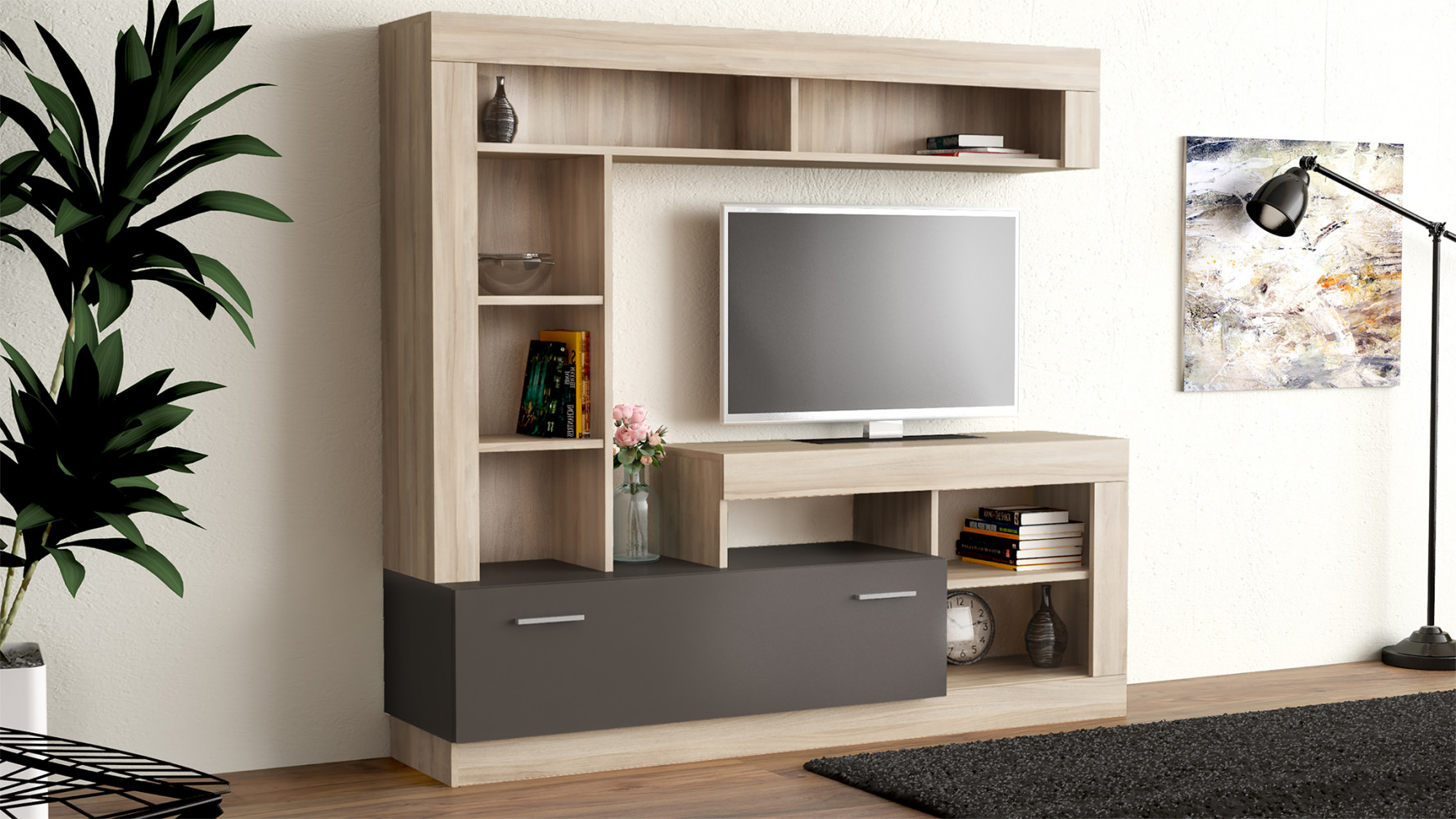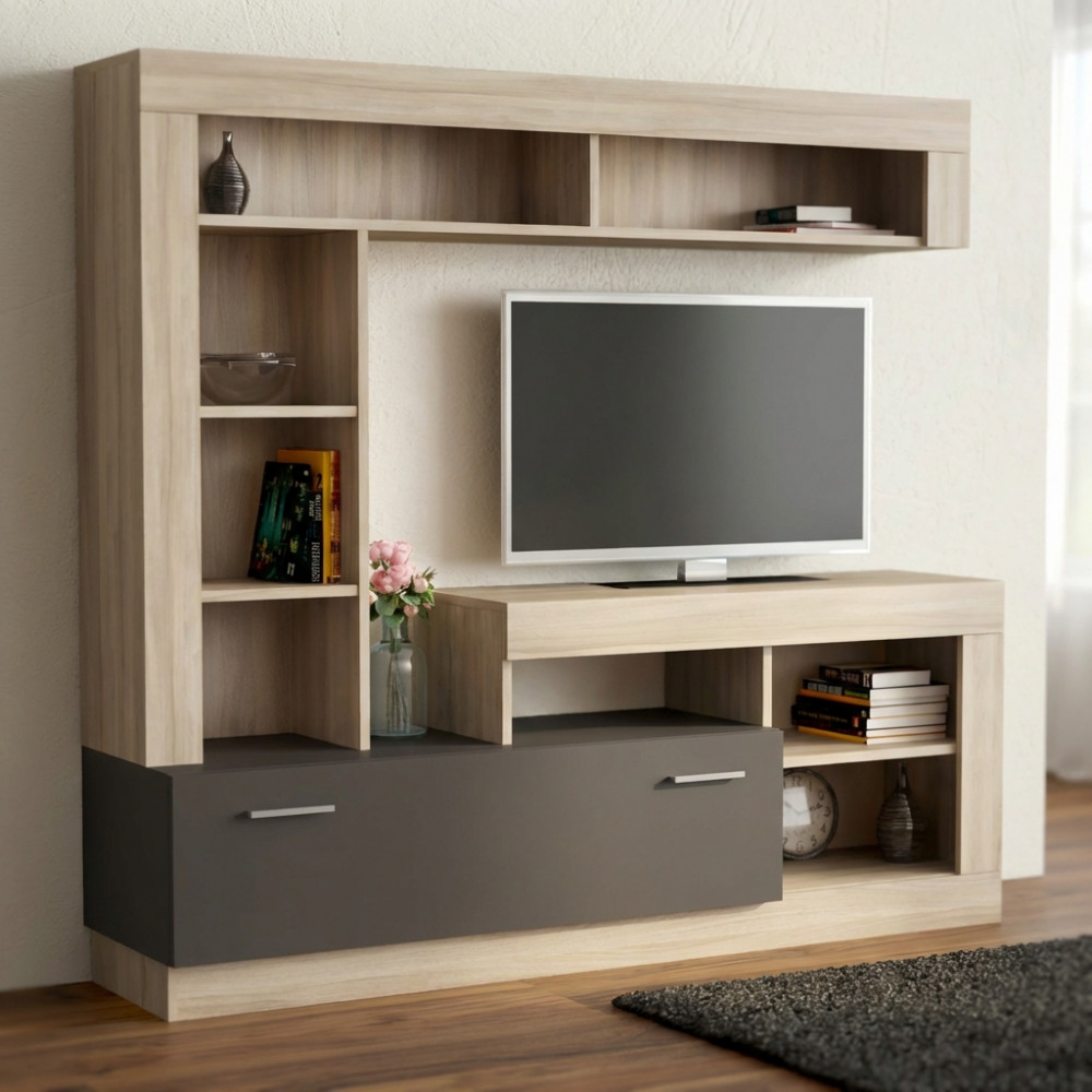 PARETE SOGGIORNO LEONARD ANTRACITE E QUERCIA CHIARO