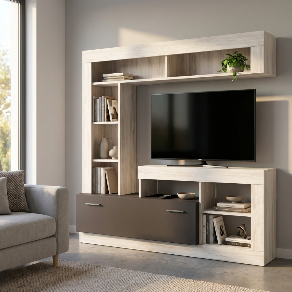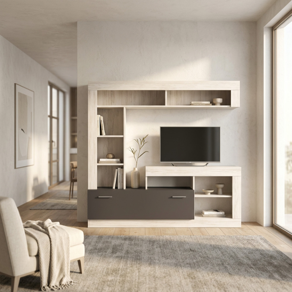 PARETE SOGGIORNO LEONARD ANTRACITE E QUERCIA CHIARO