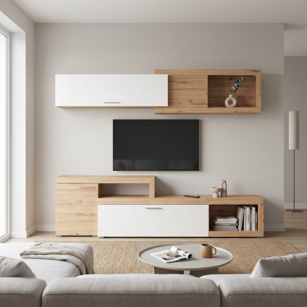11011221 SOGGIORNO KANAS ROVERE ARTIGIANO E BIANCO LACCATO SUPER