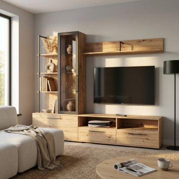 11011221 SOGGIORNO KANAS ROVERE ARTIGIANO E BIANCO LACCATO SUPER