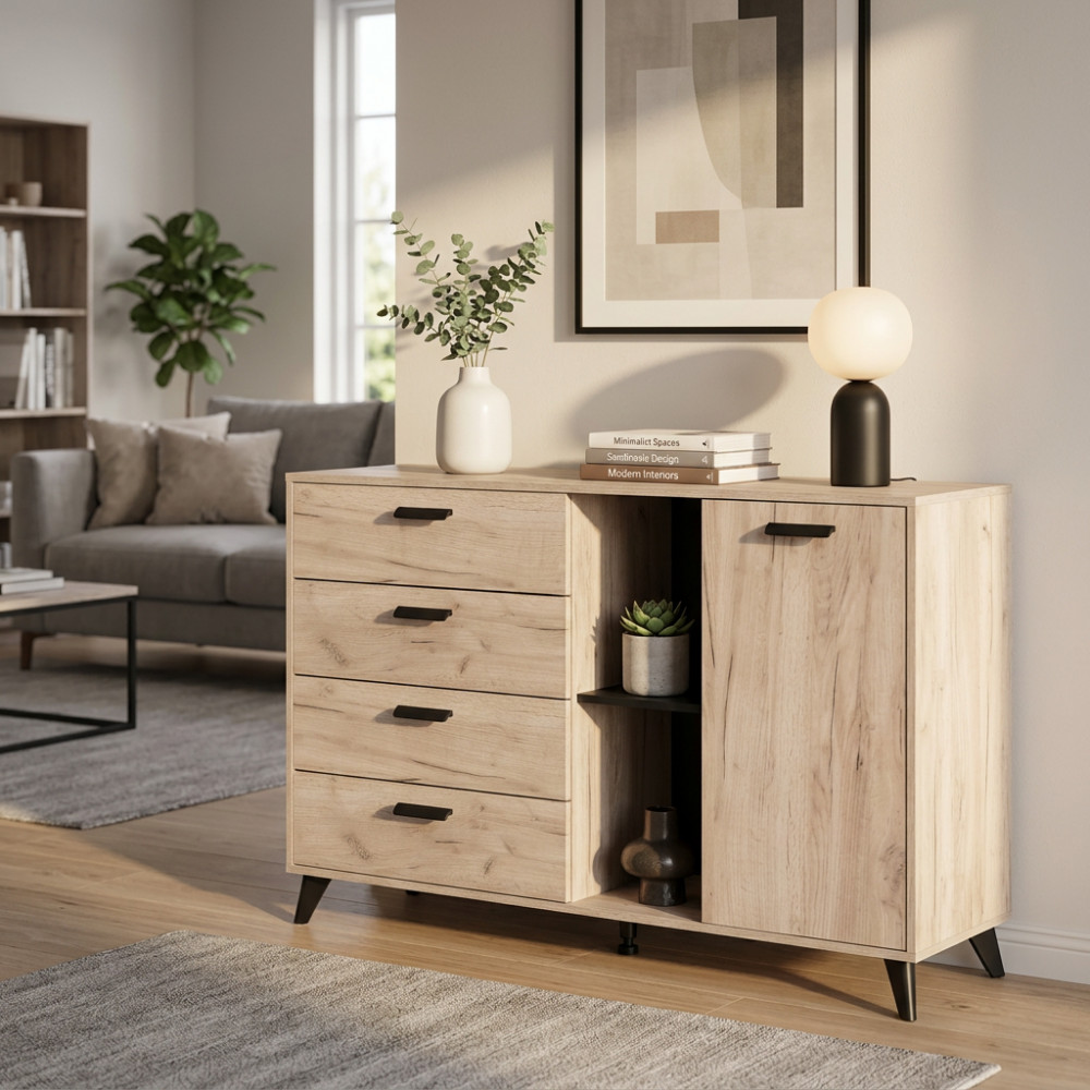 11011221 SOGGIORNO KANAS ROVERE ARTIGIANO E BIANCO LACCATO SUPER
