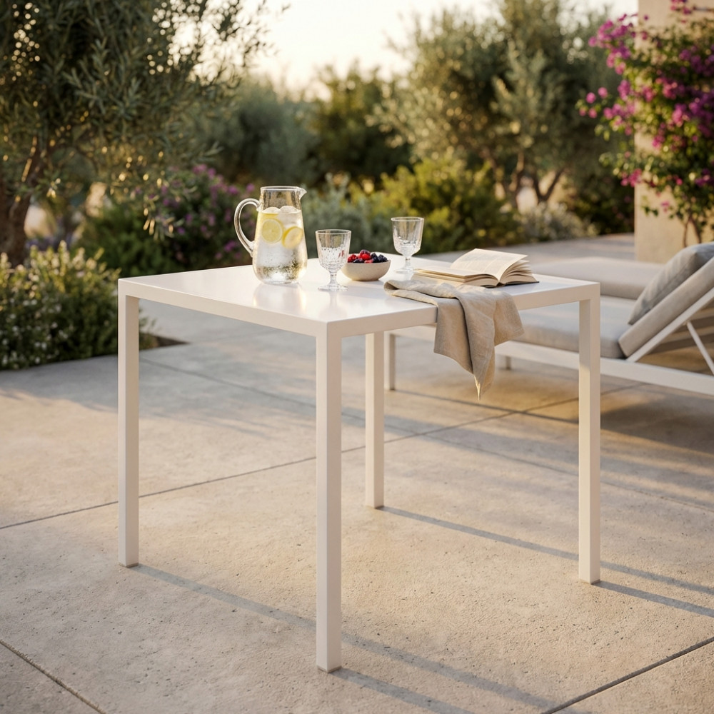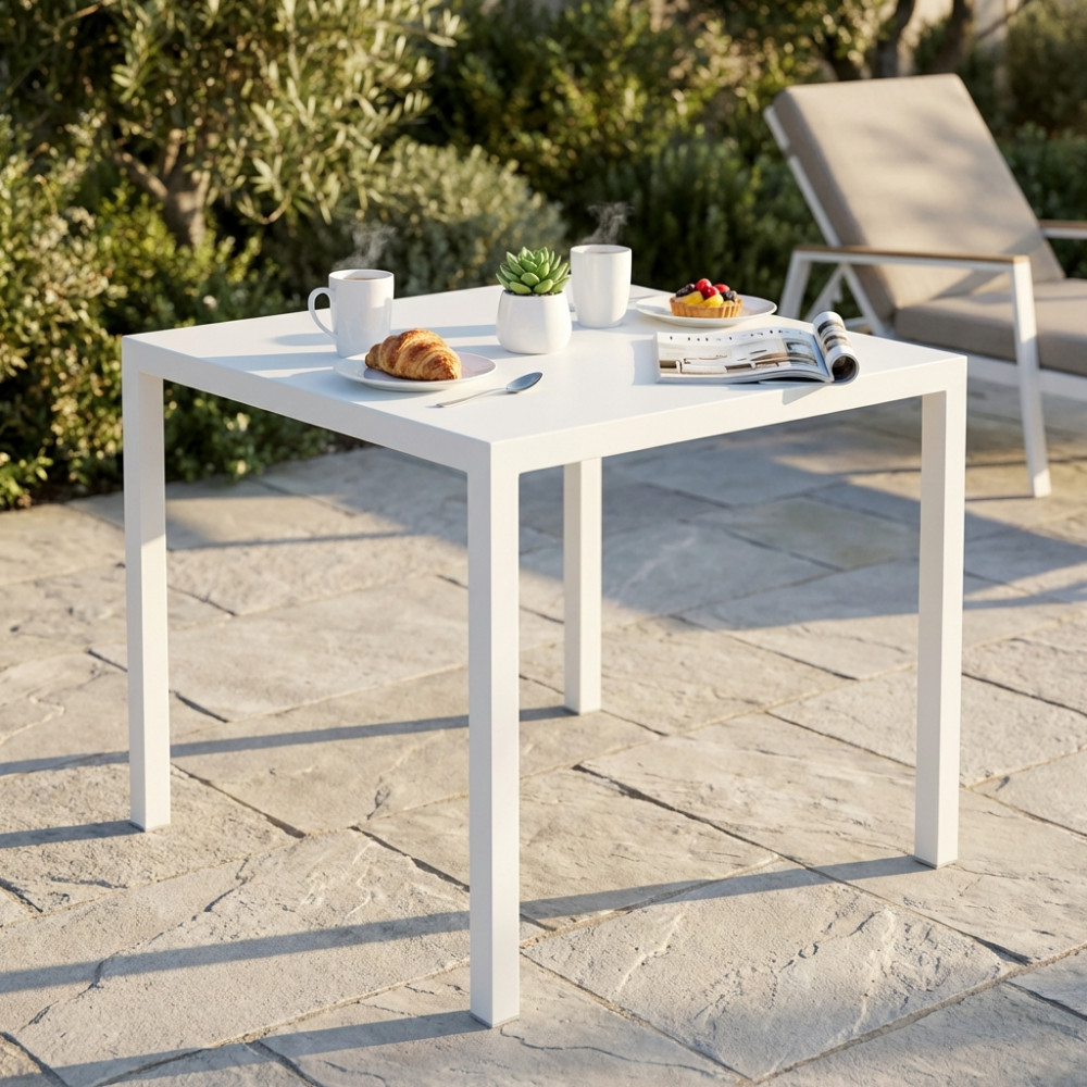 Tavolo autolivellante in metallo verniciato a polvere bianco Dimensioni: cm 80 x 80 x 74 h