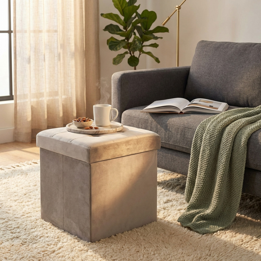 POUF CONTENITORE QUADRATO IN VELLUTO TORTORA