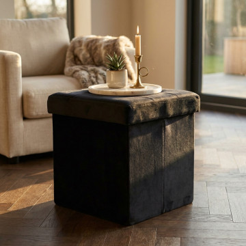 POUF CONTENITORE QUADRATO IN VELLUTO NERO