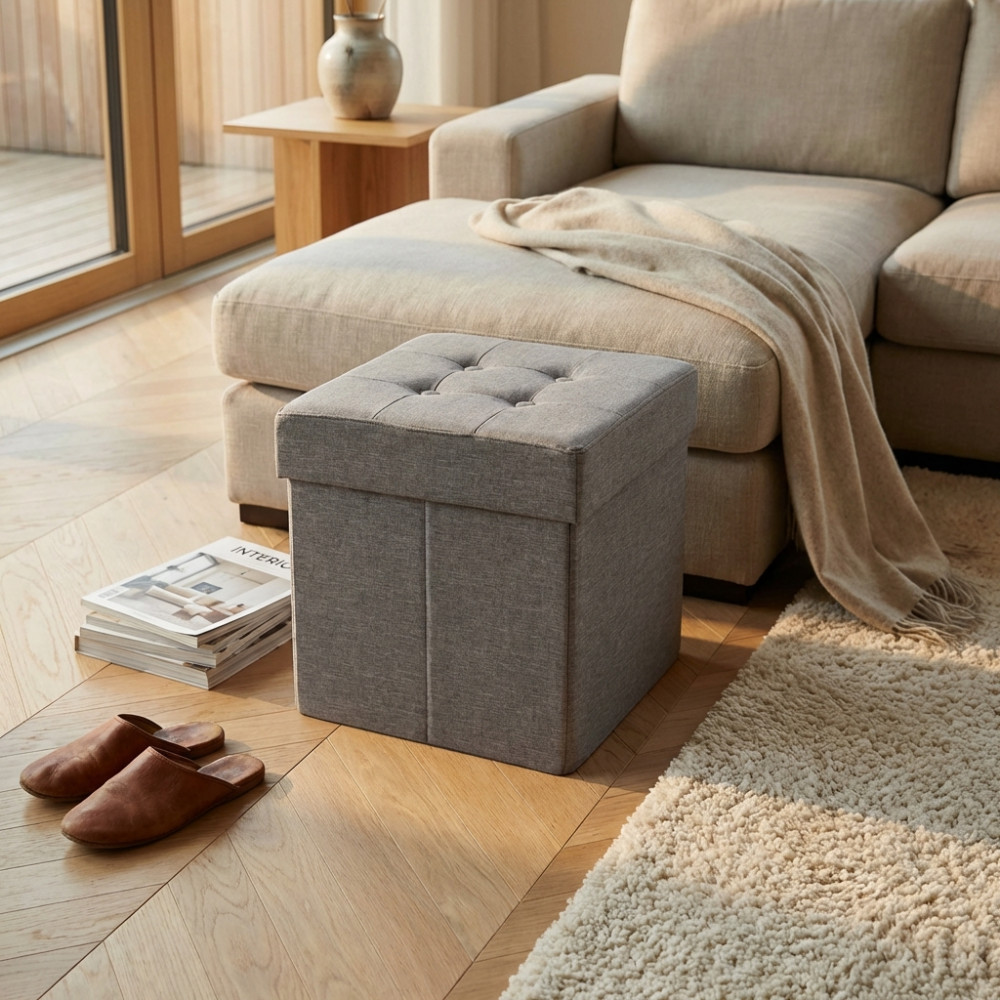 POUF CONTENITORE QUADRATO IN STOFFA GRIGIO