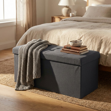 POUF CONTENITORE RETTANGOLARE IN STOFFA NERO