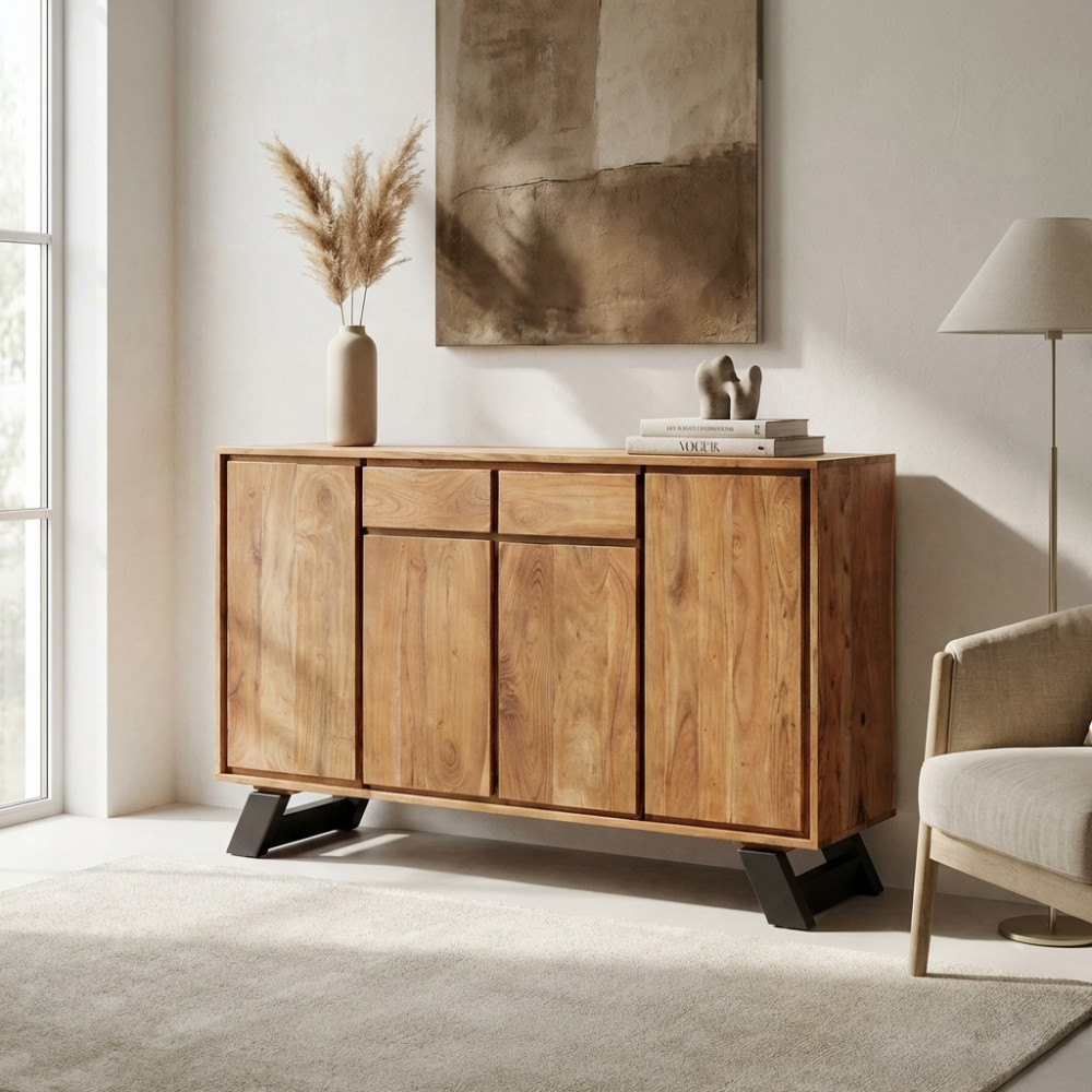 - Dati Tecnici Mobile in acacia e metallo Dimensioni: cm 150 x 38 x 90 h