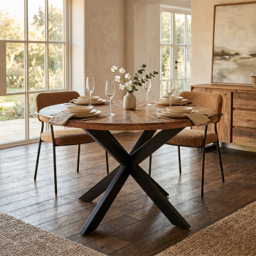 Tavolo in acacia e metallo Dimensioni: cm Ø 120 x 77 h