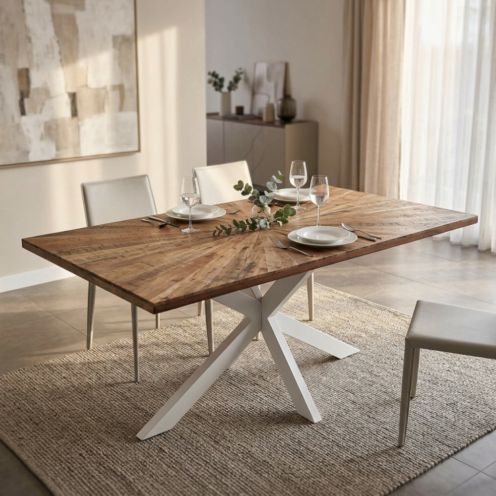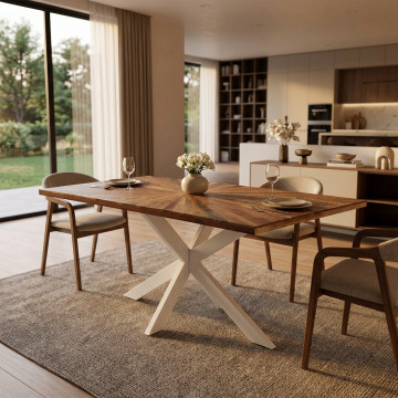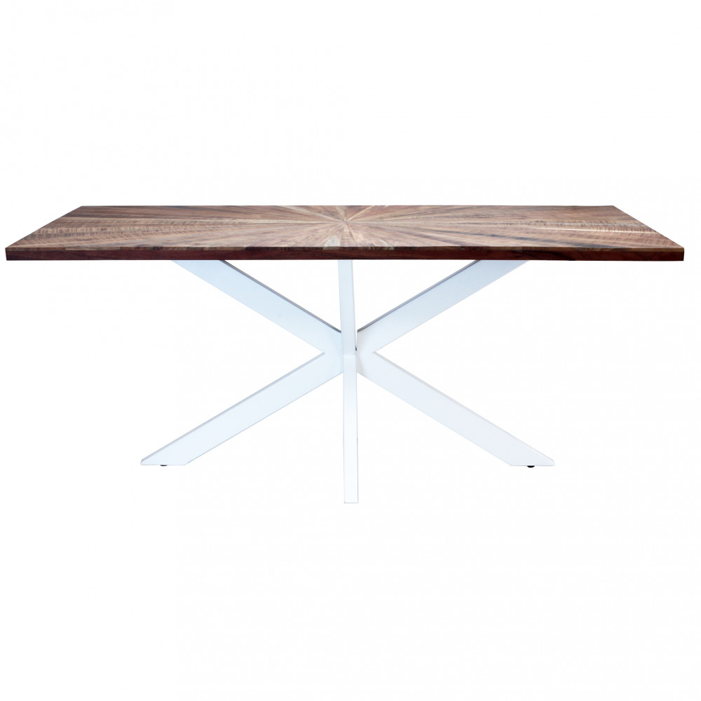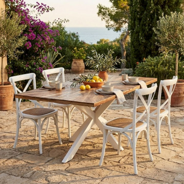 Tavolo in acacia e metallo bianco Dimensioni: cm 180 x 90 x 77 h