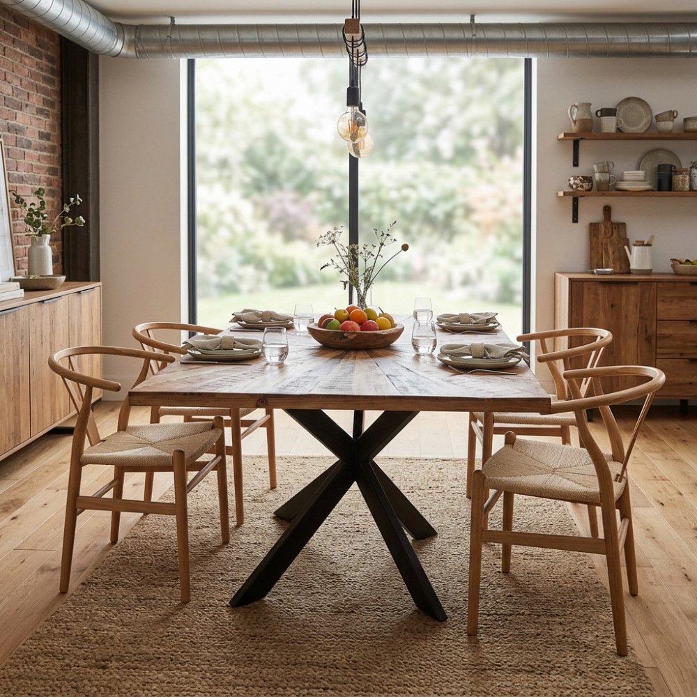 Tavolo in acacia e metallo Dimensioni: cm 180 x 90 x 77 h