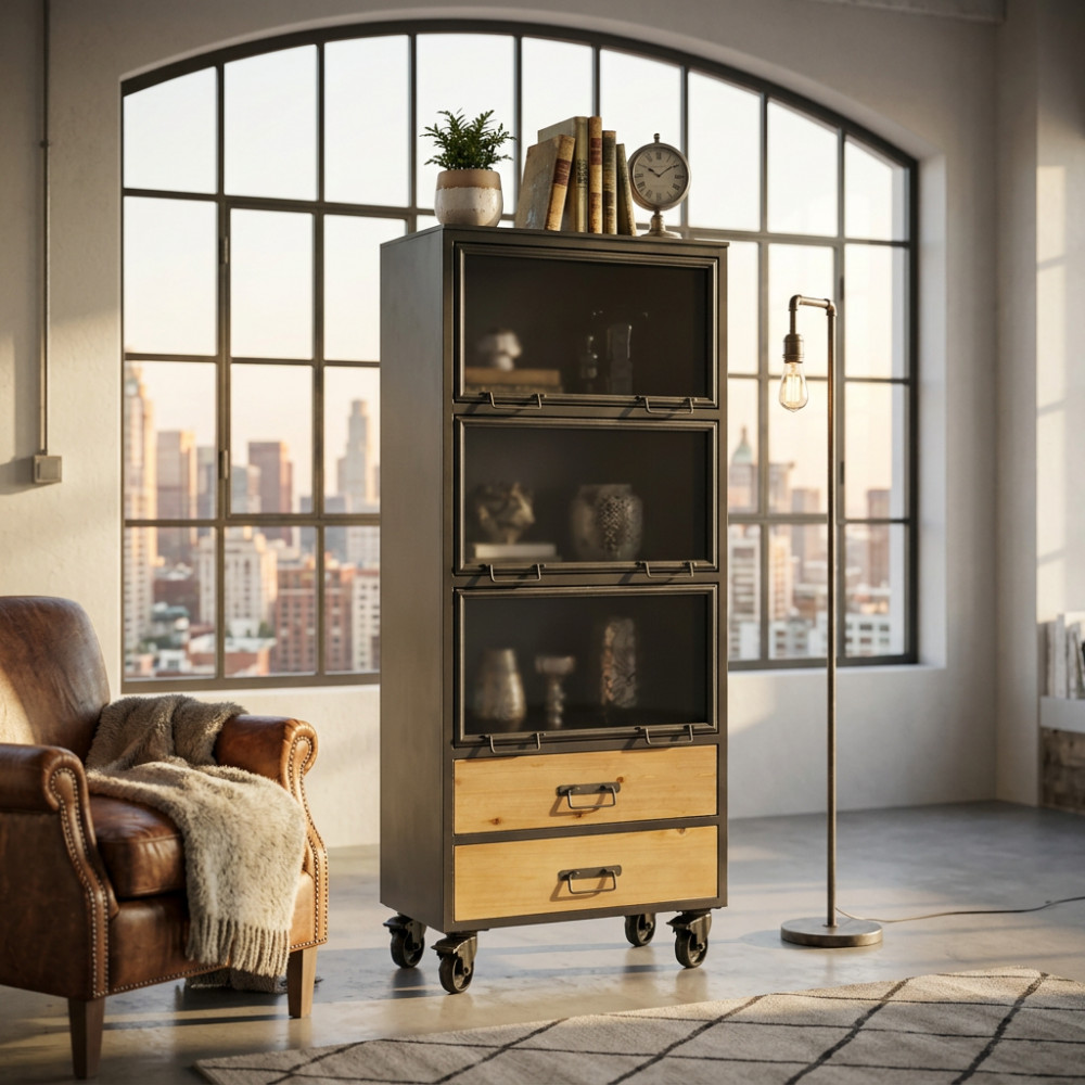 - Dati Tecnici Mobile in ferro e legno Dimensioni: cm 81,2 x 44,4 x 182,8 h