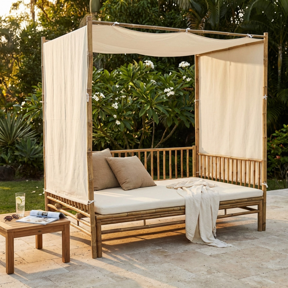 - Dati Tecnici Divano letto in bamboo con cuscino Dimensioni: cm 210 x 150 x 240 h