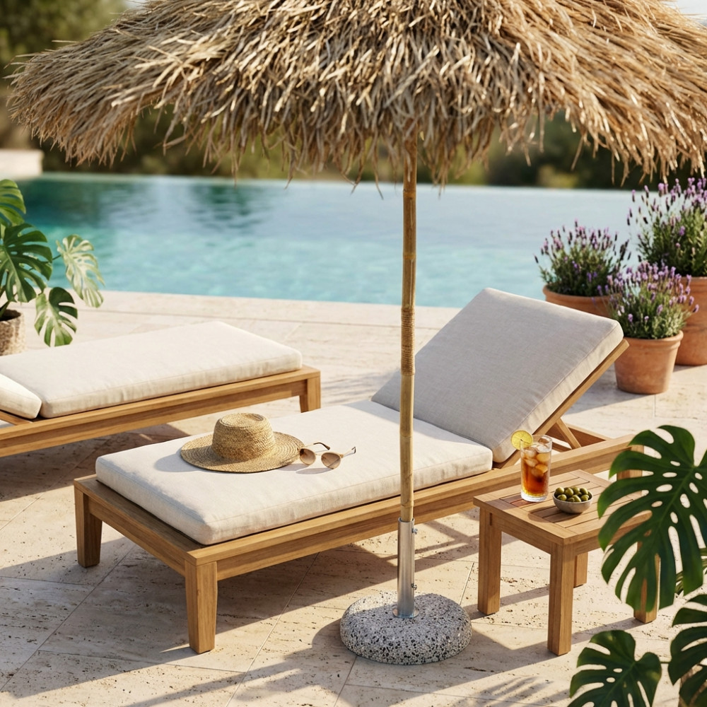 - Dati Tecnici Ombrellone in bamboo diametro palo Ø 4,2 Dimensioni: cm dia 250 x 240 h
