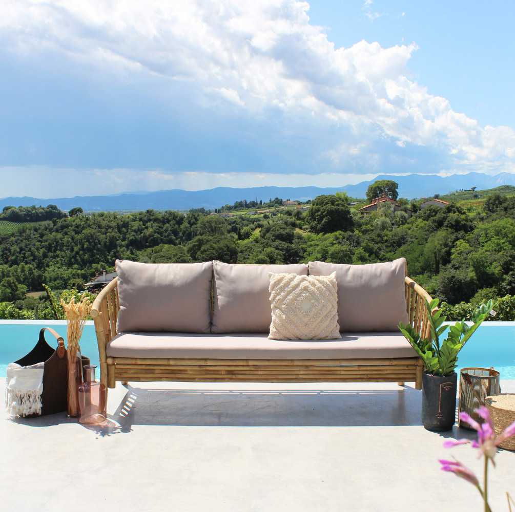 - Dati Tecnici Divano in bamboo con cuscino Dimensioni: cm 195 x 67 x 35/80 h