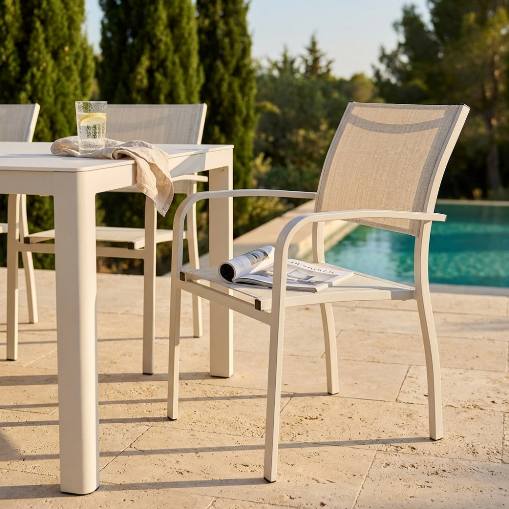 - Dati Tecnici Struttura in alluminio verniciato BIANCO o ANTRACITE o TAUPE o TORTORA textilene 2 x 1 Dimensioni: cm 56 x 65 x 87 h