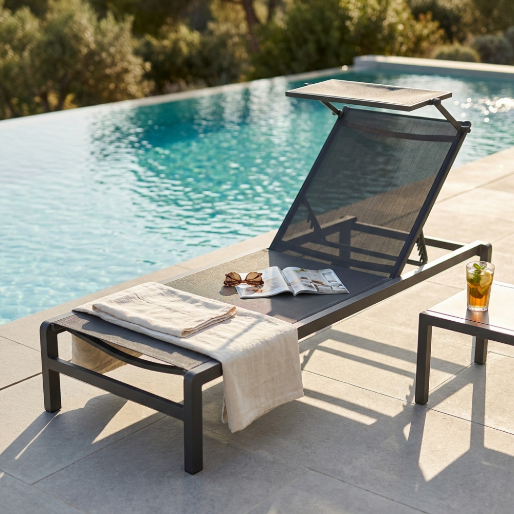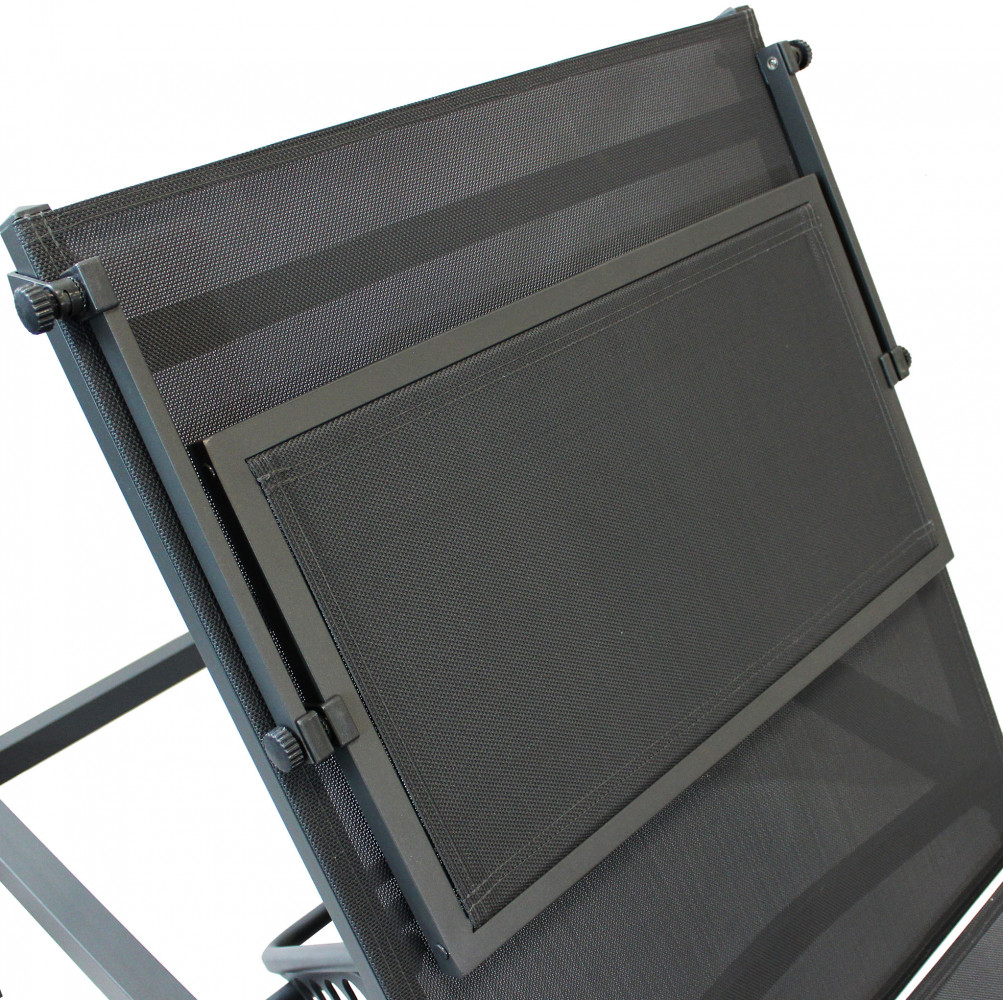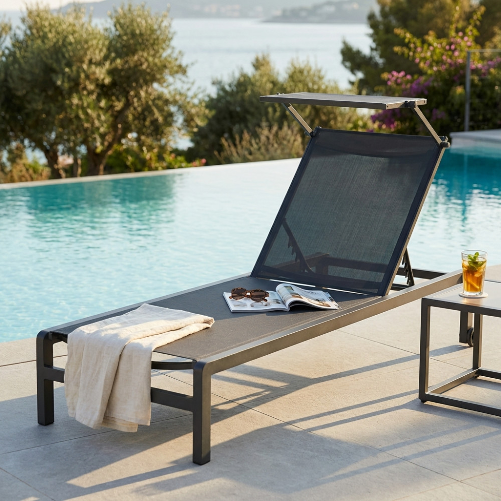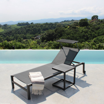 - Dati Tecnici Struttura in alluminio verniciato BIANCO o ANTRACITE o TAUPE textilene 2 x 1 con tettuccio Dimensioni: cm 195 x 78 x 32/54 h