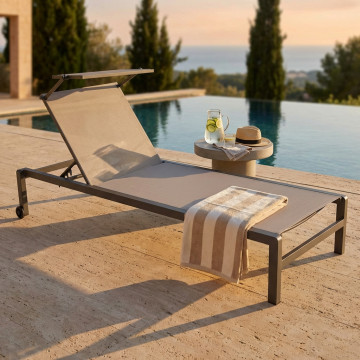 - Dati Tecnici Struttura in alluminio verniciato BIANCO o ANTRACITE o TAUPE textilene 2 x 1 con tettuccio Dimensioni: cm 195 x 78 x 32/54 h