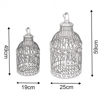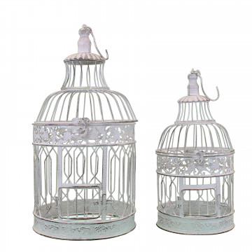 Set di 2 gabbie in metallo verniciate a polvere color BIANCO trattamento elettroforesi Dimensioni: G.Ø25x59h/P.Ø19x49h