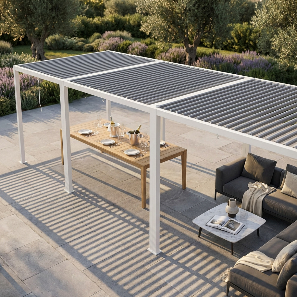 Struttura in alluminio bianco o grigio scuro modulo per estensione pergola bioclimatica EMME Dimensioni: m 3 x 3 x 2,3 h