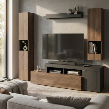 PARETE SOGGIORNO ENTRY ANTRACITE E OLMO