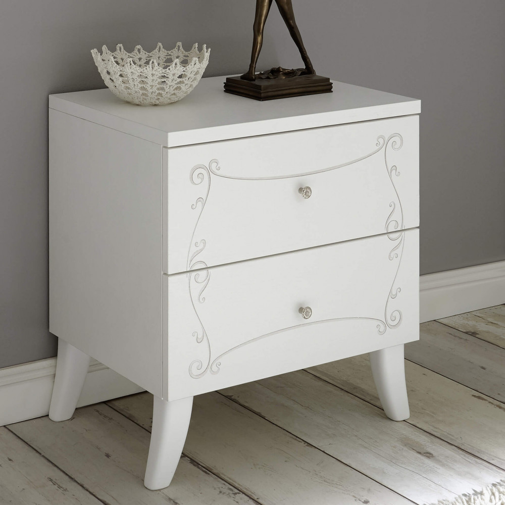 67 18 70 - 13 COPPIA COMODINI 2 CASSETTI BIANCO FRASSINATO TOMMASO