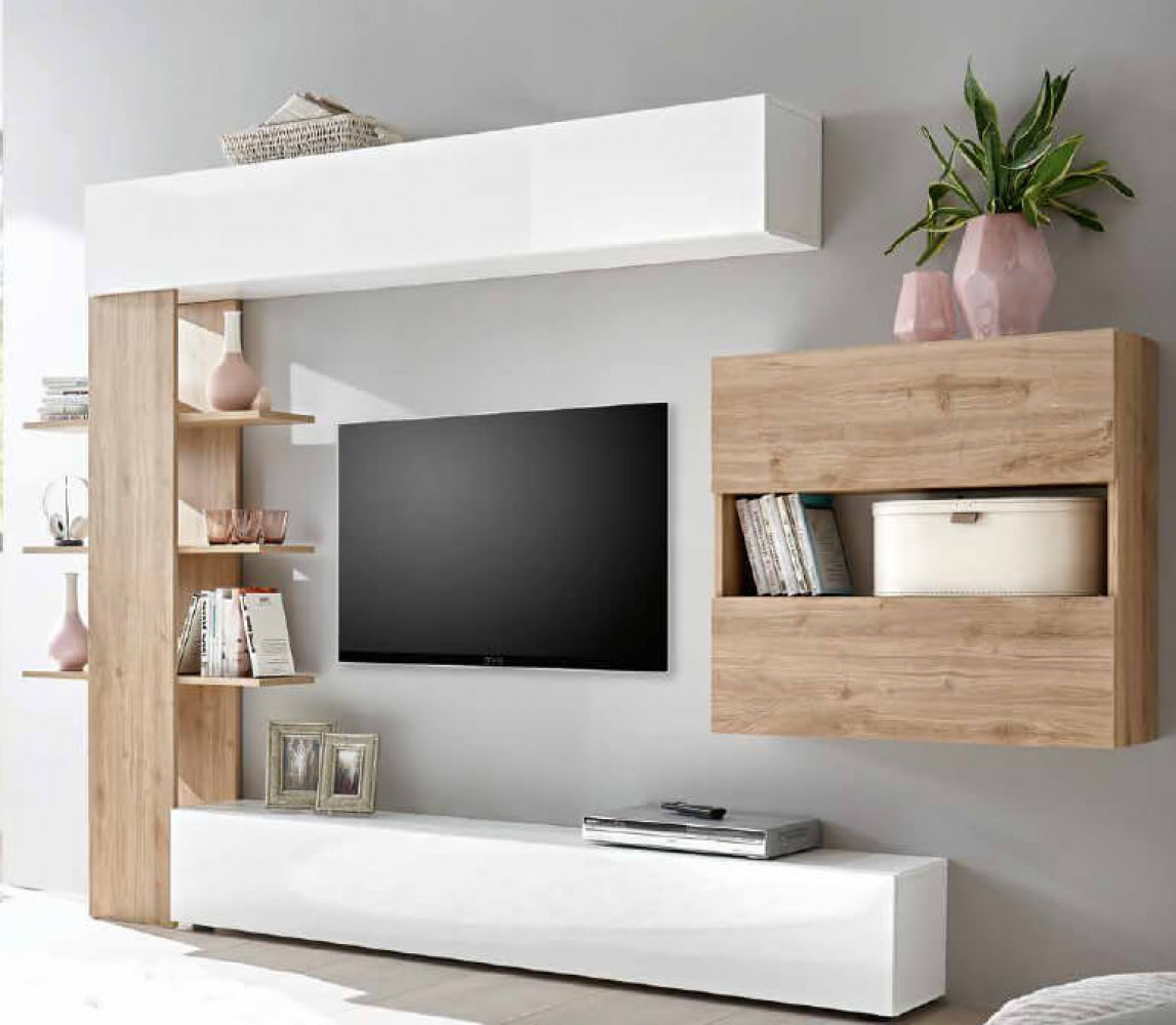 PARETE SOGGIORNO ENTRY BIANCO E ROVERE CHIARO