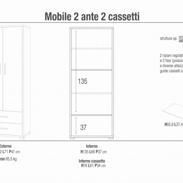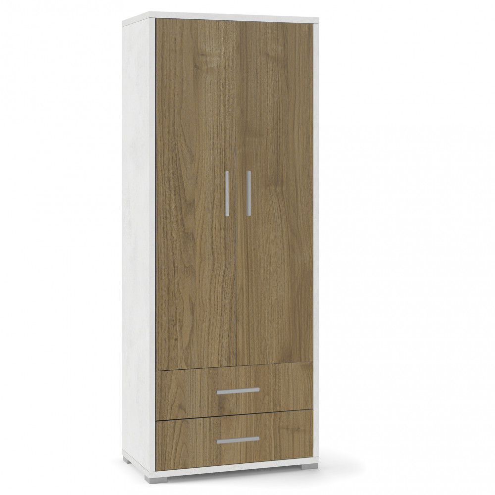 Armadio moderno con due ante e due cassetti Dimensioni: cm 71 l x 41 p x 182 h