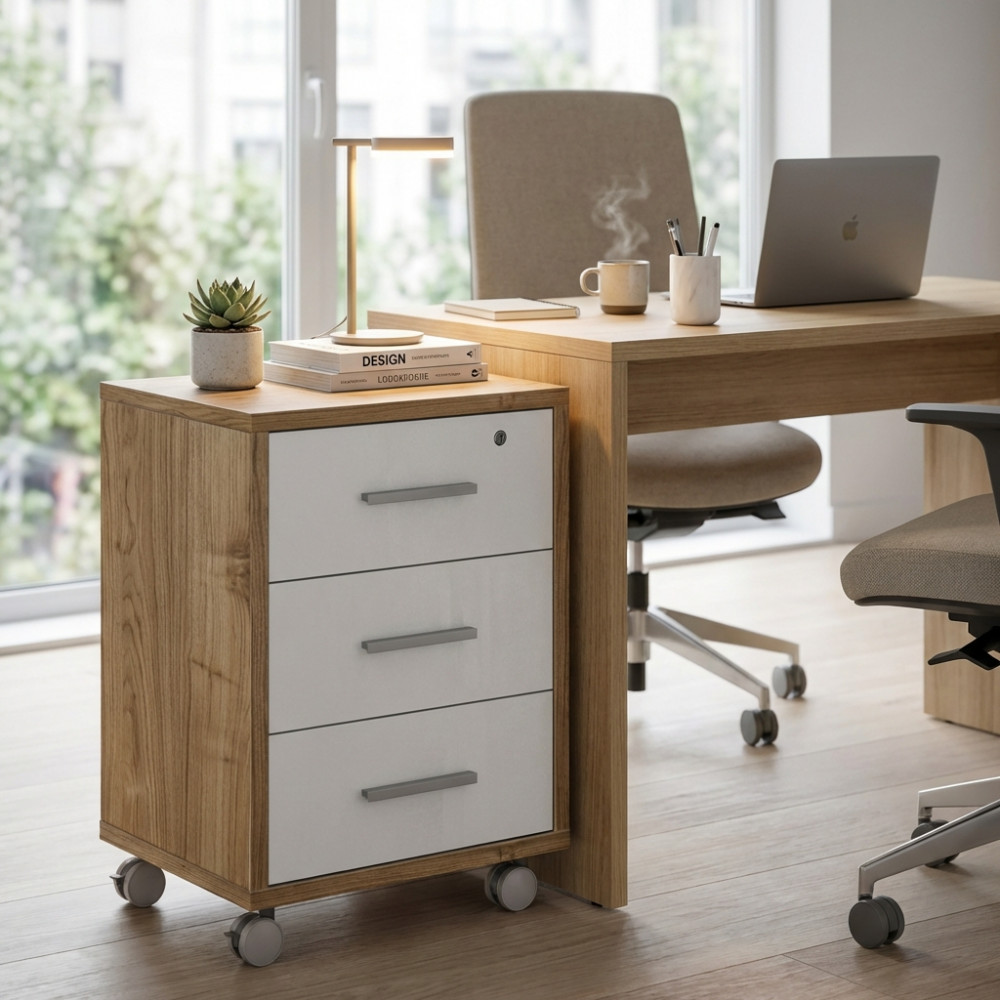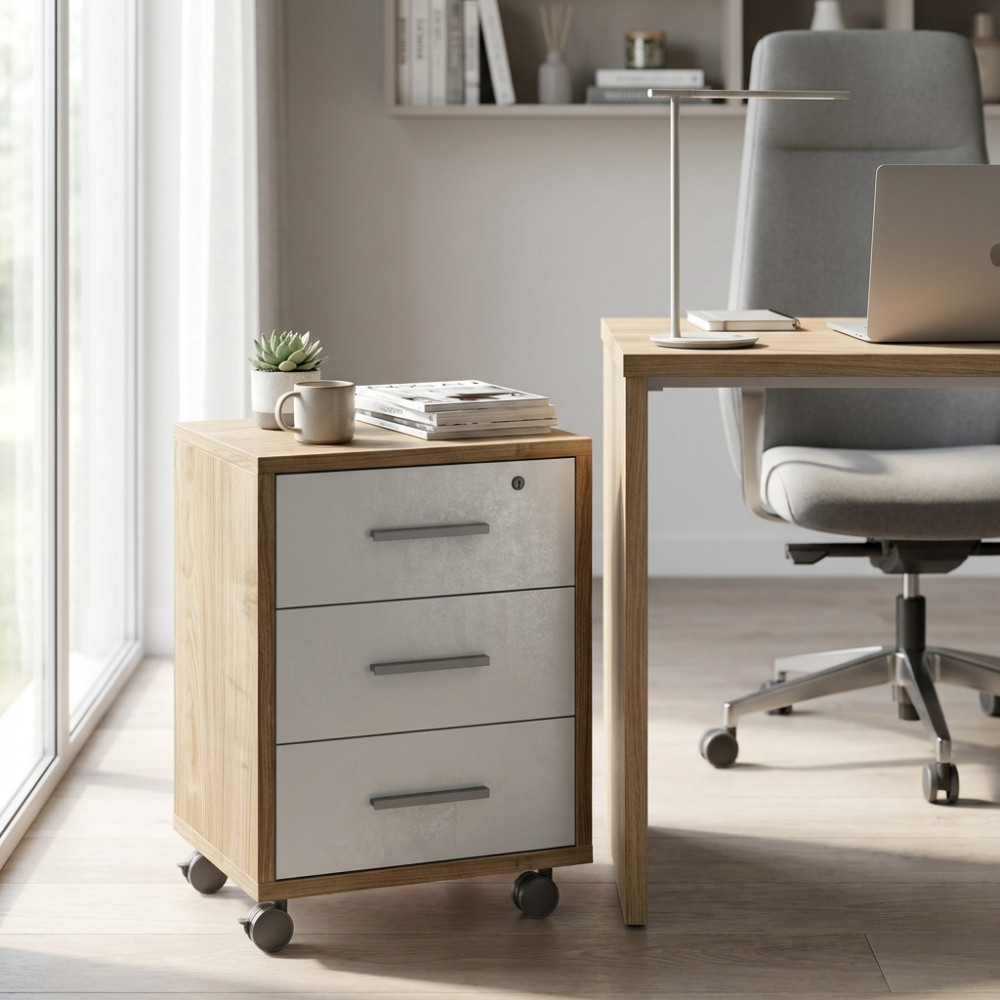 Cassettiera per ufficio 3 cassetti con ruote Dimensioni: cm 51 l x 41 p x 71 h