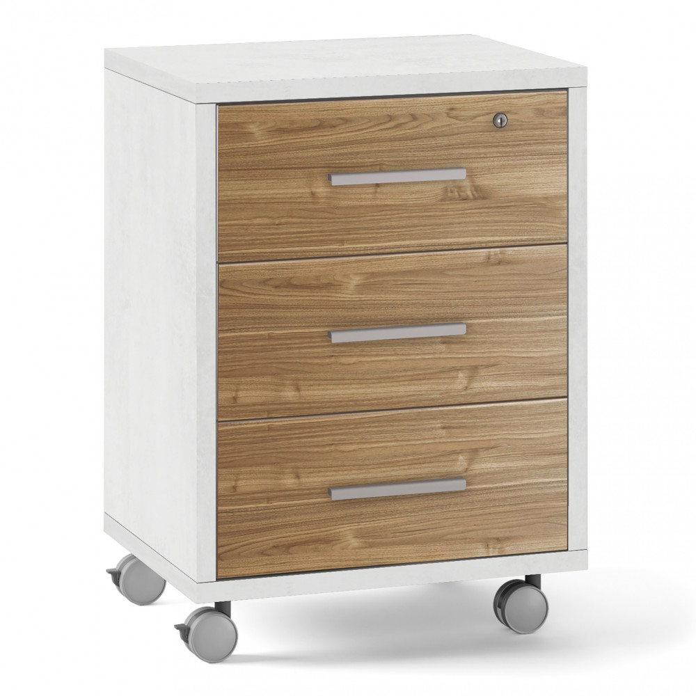 ADB733OSNS MOBILE 3 CASSETTI SU RUOTE OSSIDO BIANCO E NOCE STELVIO